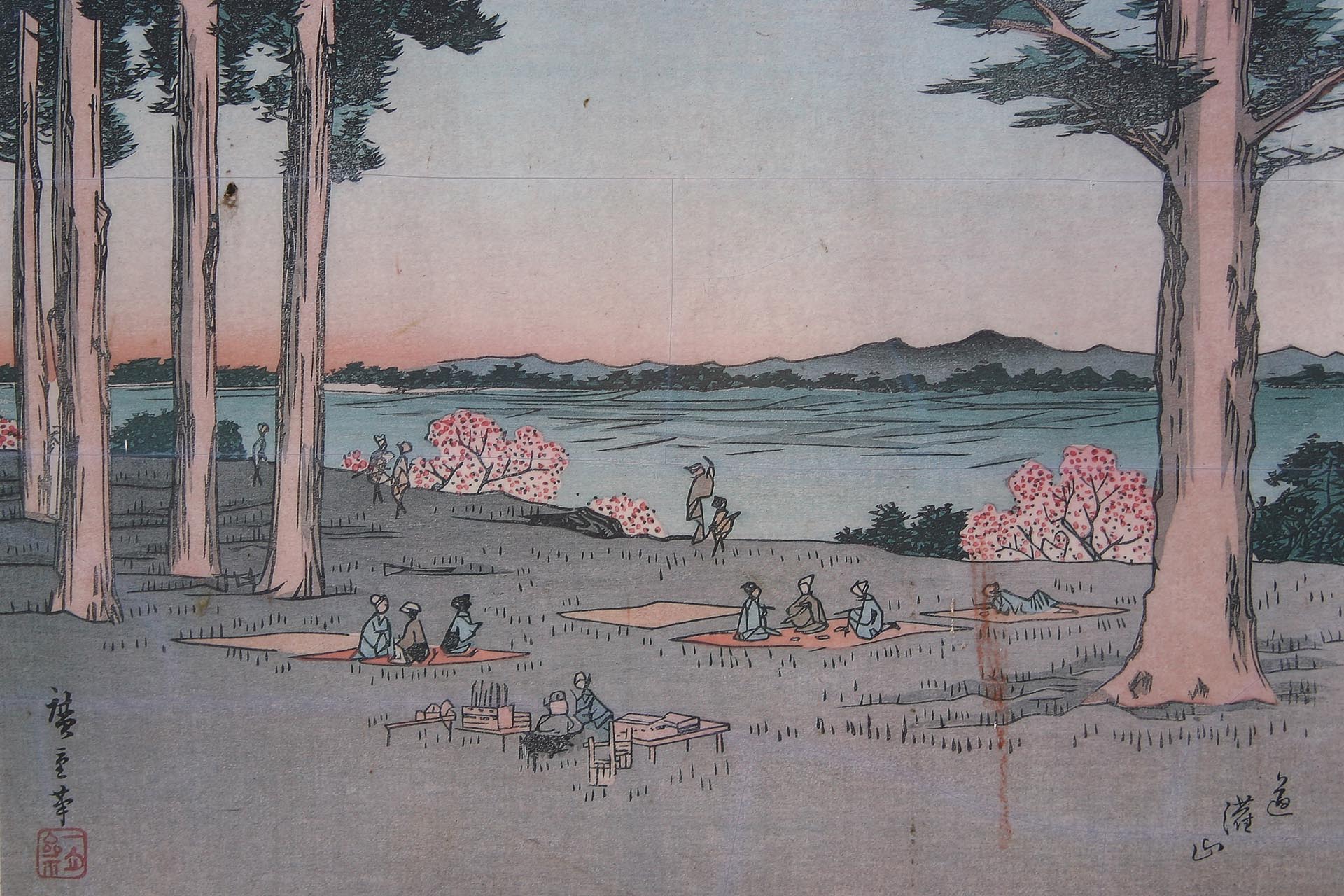 Nearby temples, Jōkō-ji, Hongyō-ji, and Seiun-ji, were also known by the elegant, literary names of “Yukimi-dera” (Snow-Viewing Temple), “Tsukimi-dera” (Moon-Viewing Temple), and “Hanami-dera” (Flower-Viewing Temple), reflecting the cultural tastes of the time. While the majority of Dōkanyama was the residence of the Satake Clan, the feudal lords of the Akita Domain, the eastern cliffside served as a recreational spot for the public. On clear days, the mountains of Tsukuba and Nikkō could be viewed. Even today, you can enjoy the view from the grounds of Osuwa-sama (Suwa Shrine) and Nishinippori Park.